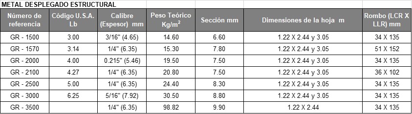 El metal desplegado es un material liviano que se utiliza en la decoración, en revestimientos, pisos o para fabricar rejas de seguridad.Tabla de especificaciones